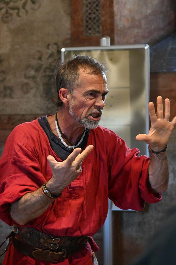 La visita, intitolata “Viaggio nel mistero delle pietre”, rappresenta un percorso suggestivo all’interno degli spazi della Rocca. Grazie all’intervento di Romagnoli – attore, formatore e performer dalla lunga esperienza – la visita si trasforma in una lettura sensibile e personale del luogo, capace di restituire profondità storica e risonanza emotiva.