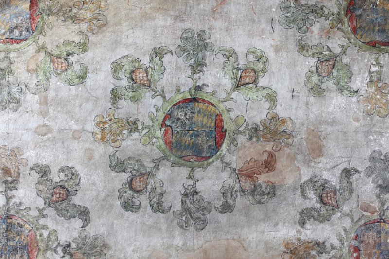 Il locale adiacente a quello del Padiglione, la Sala degli Stemmi, è completamente dedicato alla famiglia Contrari. Su tutte le pareti è riportata l’arma inquartata dei signori di Vignola, caricata su uno scudo da torneo, posto entro un tondo rosso e con cinghie al capo, ed è circondata da una ghirlanda formata da serto verde di due rami, da cui escono in alternanza pigne rosse con foglie e iris azzurri e gialli.