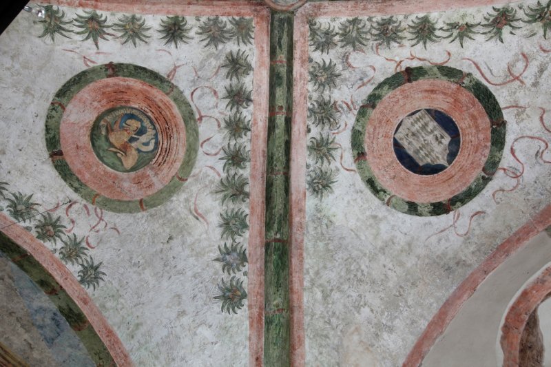 Ad avvalorare la rappresentazione del matrimonio del secondogenito di Uguccione Contrari è la presenza nelle vele del soffitto dello stemma della famiglia Campofregoso e la raffigurazione del leone e del leopardo utilizzata dai Contrari in onore dei loro signori d’Este.
