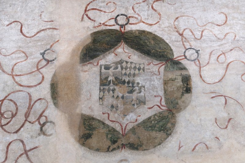 L’arma dei Pio, signori di Carpi, appartiene a Camilla, seconda moglie di Uguccione Contrari; lo stemma dei Rangoni ricorda Beatrice e moglie di Nicolò Contrari, primo conte di Vignola; l’arma dei Campofregoso appartiene a Battistina, sposa di Ambrogio Contrari. La presenza nella sala dello stemma dei Pico di Mirandola è tuttora un enigma in quanto nessun esponente di questa famiglia ha mai contratto matrimonio con un discendente della casa Contrari. Sulla volta si possono scorgere le tracce di un quinto stemma, non identificabile con certezza a causa dei danni subiti dall’affresco, che secondo una recente ipotesi potrebbe appartenere ai nobili Campeggi di Bologna.