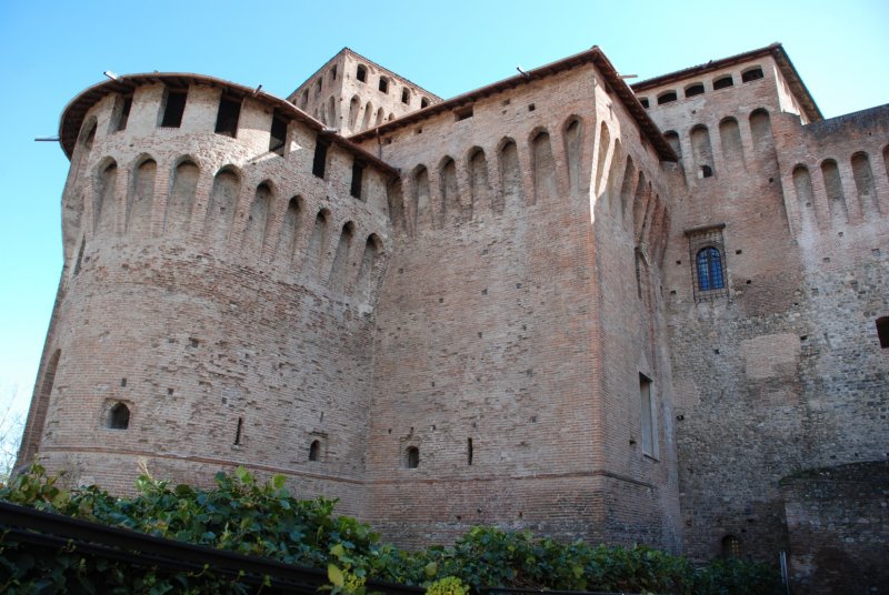 All’esterno della Rocchetta vale la pena di soffermarsi a considerare la Corte. Osservando le mura si notano subito i diversi materiali costruttivi utilizzati nel corso dei secoli: il sasso di fiume delle strutture più antiche e i mattoni in cotto delle ristrutturazioni successive, soprattutto di epoca Contrari.